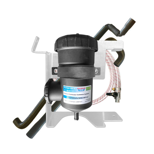 It lets you mount the ProVent 200 alongside a Donaldson pre-filter for combined crankcase/oil mist control and pre-filtration — tidy layout, easy servicing.