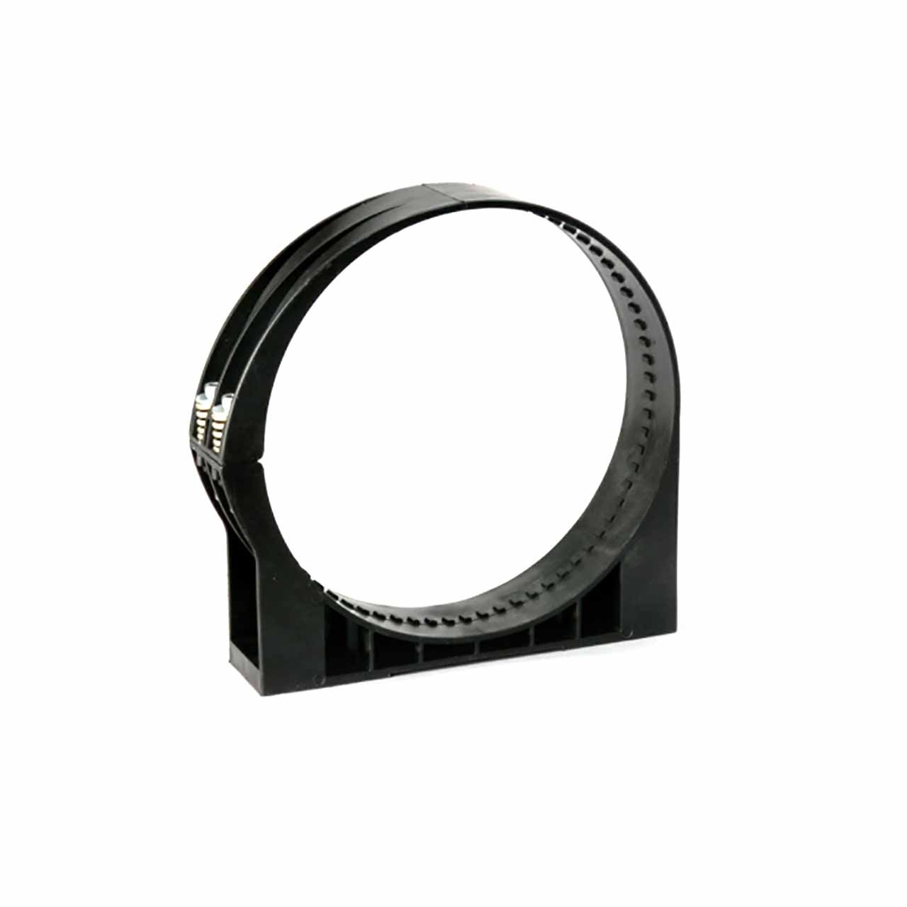 The one-piece, high tech polymer mounting band will securely hold the housing in position. The band has tabs on the inside circumference which fit exactly into notches on the FPG housing. Donaldson polymer bands are completely noncorrosive, lightweight, easy to install, and economical. The band tightens around the air cleaner when the base of the band is bolted to a support, providing a fixed, stable mounting - even in high vibration applications. Donaldson polymer bands are completely non-corrosive, lightweight, easy to install, and economical.