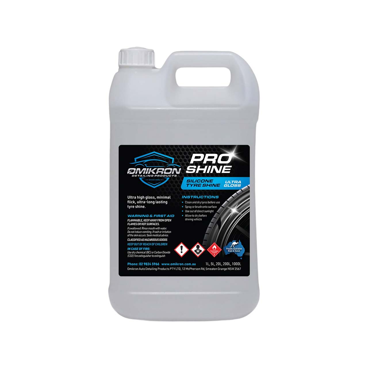 ***PICKUP ONLY: Pro Shine Tyre Shine - Ultra High Gloss, Long Lasting Silicone 5L Omikron
