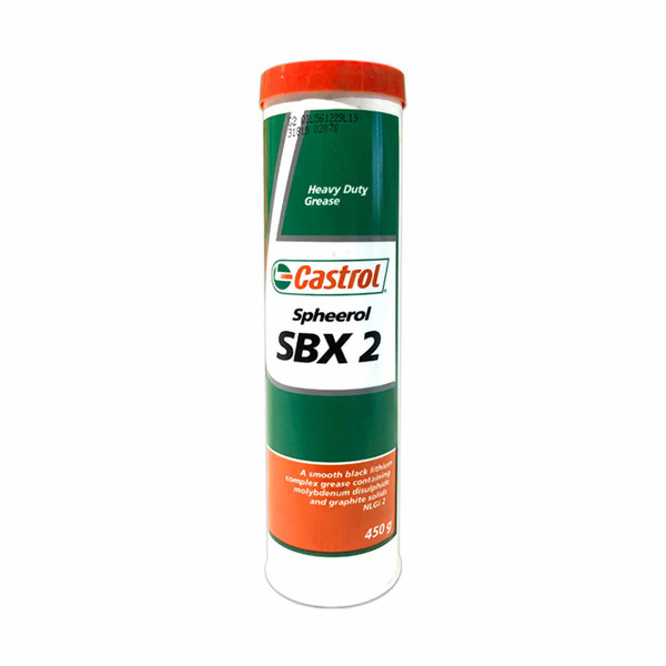 Castrol's SBX 2 is a smooth black lithium complex grease containing Molybdenum disulphide and graphite solids. SBX2 is a unique blend of extreme pressure additive, solid lubricants and an effective corrosion inhibitor in a heavy viscosity synthetically modified base oil. SBX2 has a drop point of 230c and has a load carrying capacity exceeding 800kg under 4 ball weld load tests.