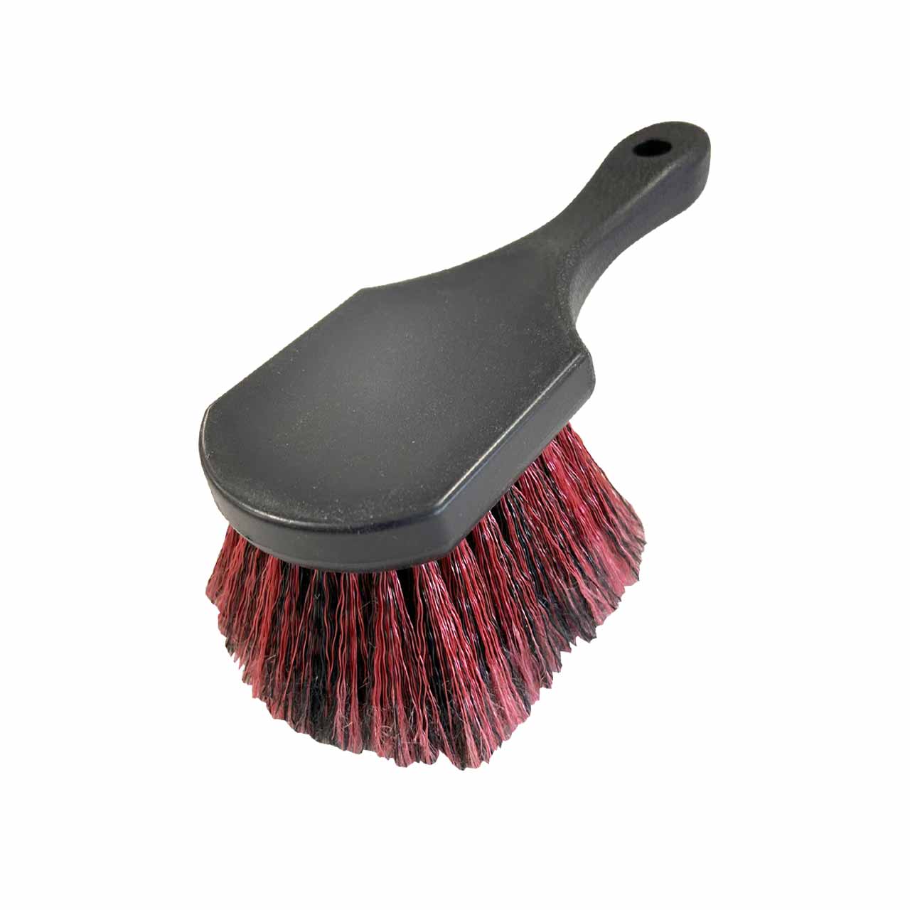 The boar hair bristle brush is excellent for reaching tight spaces and small spots like wheels, lug nuts, engine compartments, leather seats, and bumpers, offering precise and thorough cleaning. Short sturdy, non-slip handle. Great for cleaning tyres and wheel rims. Soak in the suds before getting started. Easily removes dirt, grime and brake dust. Suitable for interior and exterior surfaces, tires, wheels, carpets, and can be used on various vehicles like trucks, SUVs, RVs, and motorcycles.